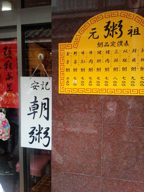「朝粥」の看板が出ていて、各種のお粥が用意されていて、美味しく味わえます。