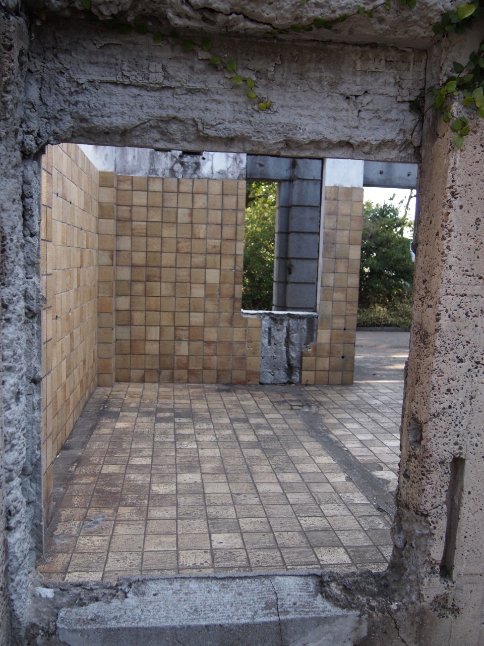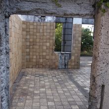 焼け焦げたかんじの壁が屋根の抜けた状態で残っていて、なんとも不思議な雰囲気です。