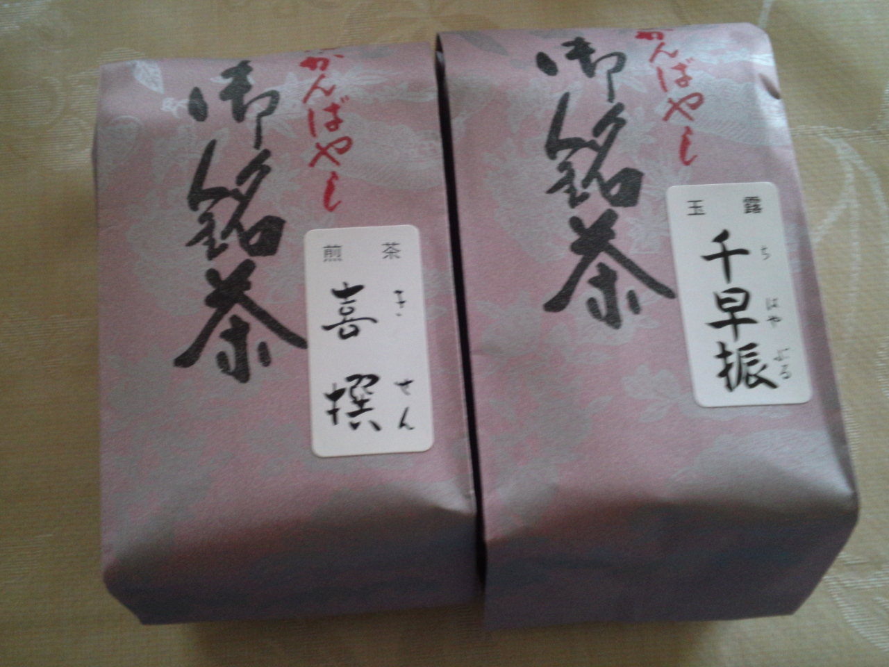 で、煎茶の喜撰(きせん)と玉露の千早振(ちはやぶる)に決めました。共に100g1575円。