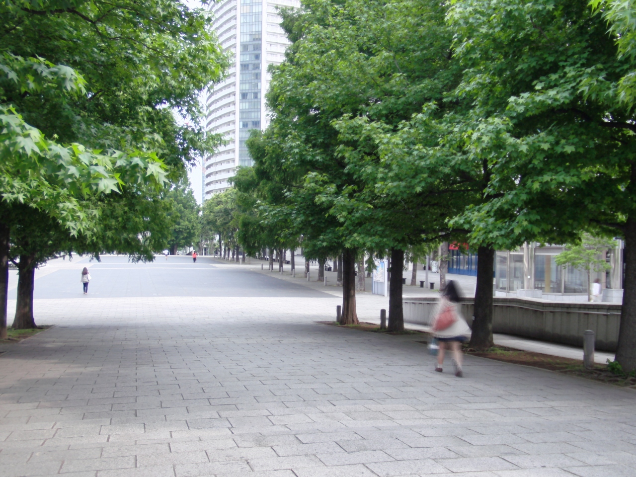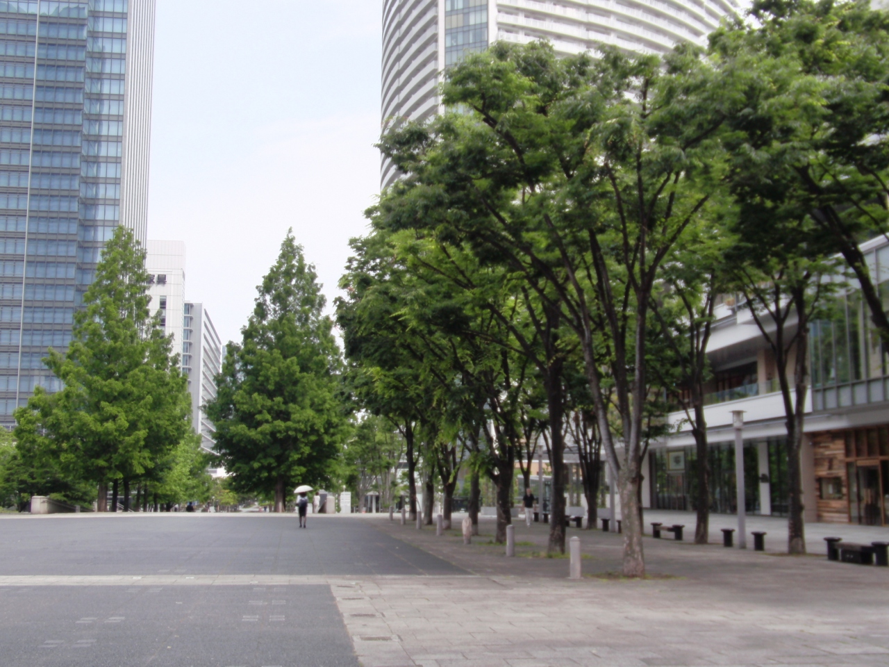 横浜美術館とマークイズみなとみらいの間の広々とした公園
