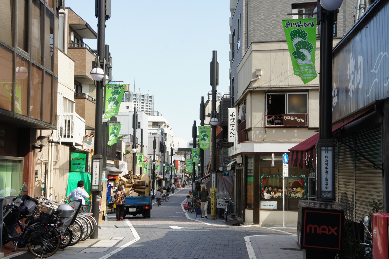 北品川商店街は品川駅から歩いて行きましたが、ここは旧東海道の品川宿。ゆるくカーブしている感じは、当時の街道の名残でしょう。商店街は青物横丁駅まで続きますが、北品川商店街は、途中の目黒川までです。