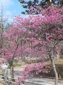 桜の時期は夜間も安全にお散歩できます。内地の桜とは違った、ピンクの桜もきれいですよ