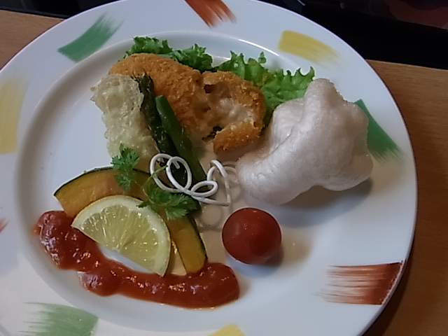 カニクリームコロッケは、サクサク熱々の衣に、とろりとクリーミー、蟹の身もそこそこ入っていて、今までで食べたカニクリームコロッケの中でベストでした。
