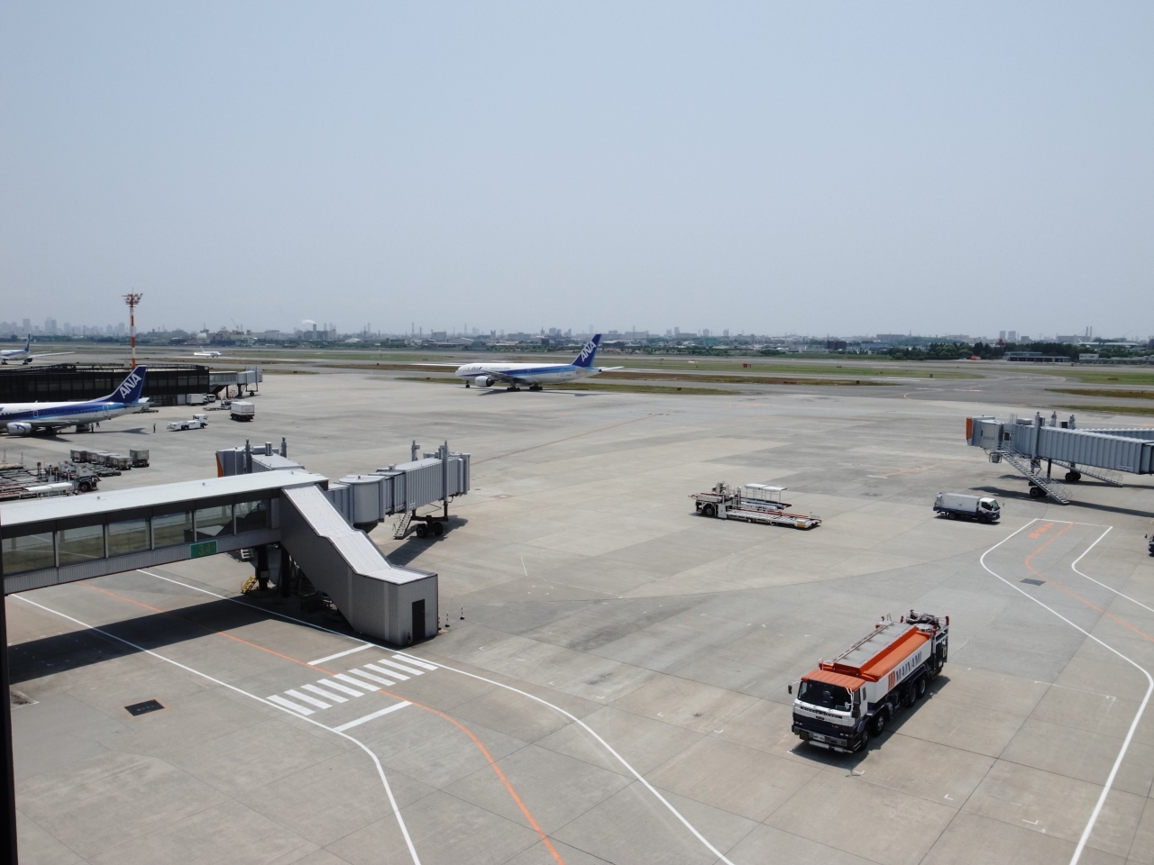 大阪伊丹空港の屋上にある展望台デッキ。飛行機の離着陸をなにをするでもなくぼーっとみているのは結構幸せです。飛行機かっこいいね。飛行場によっては、この手のスペースは入場料を取るところもあるみたいだけど、ここは無料でよい。但し階段で登ってくるのは結構しんどい。