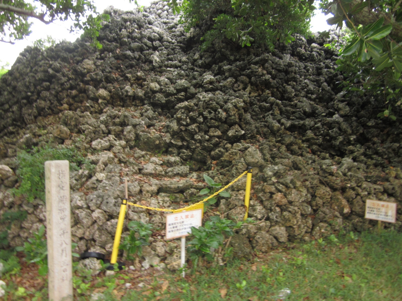 黒島ビジターセンターと宮里海岸の間にあります。琉球王国時代、海上を行く船を監視する為に岩を積み上げて作った人工の高台だそうです。以前は登ることが出来たそうですが、崩落の危険があるので現在は立ち入り禁止となっています。