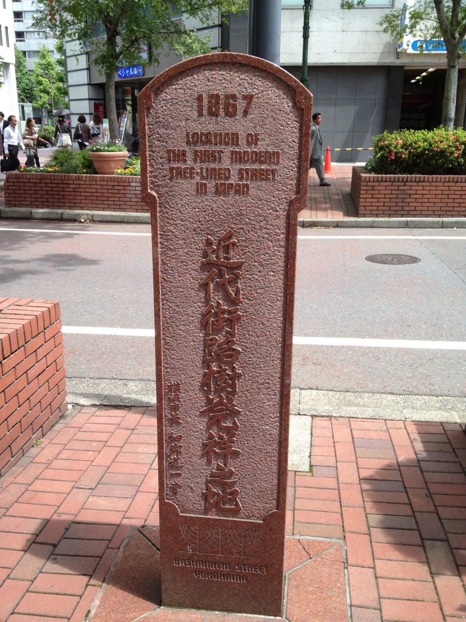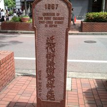 馬車道の途中、馬車道交差点の所にひっそりと石碑がたっています。
