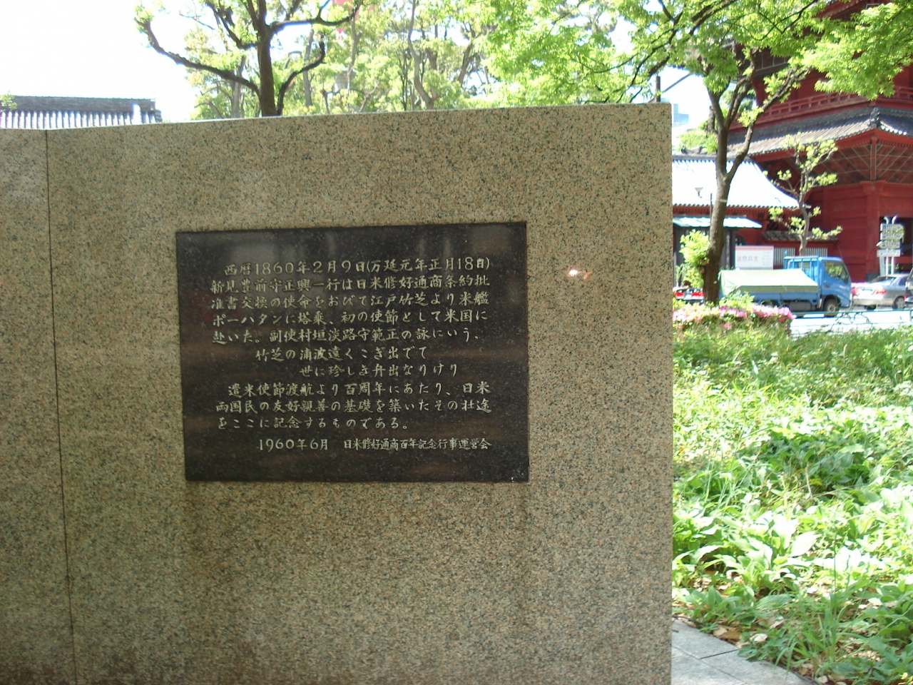 万延元年(1860年)日米修好通商条約批准書交換のため使者一行が竹芝からアメリカに赴いた。