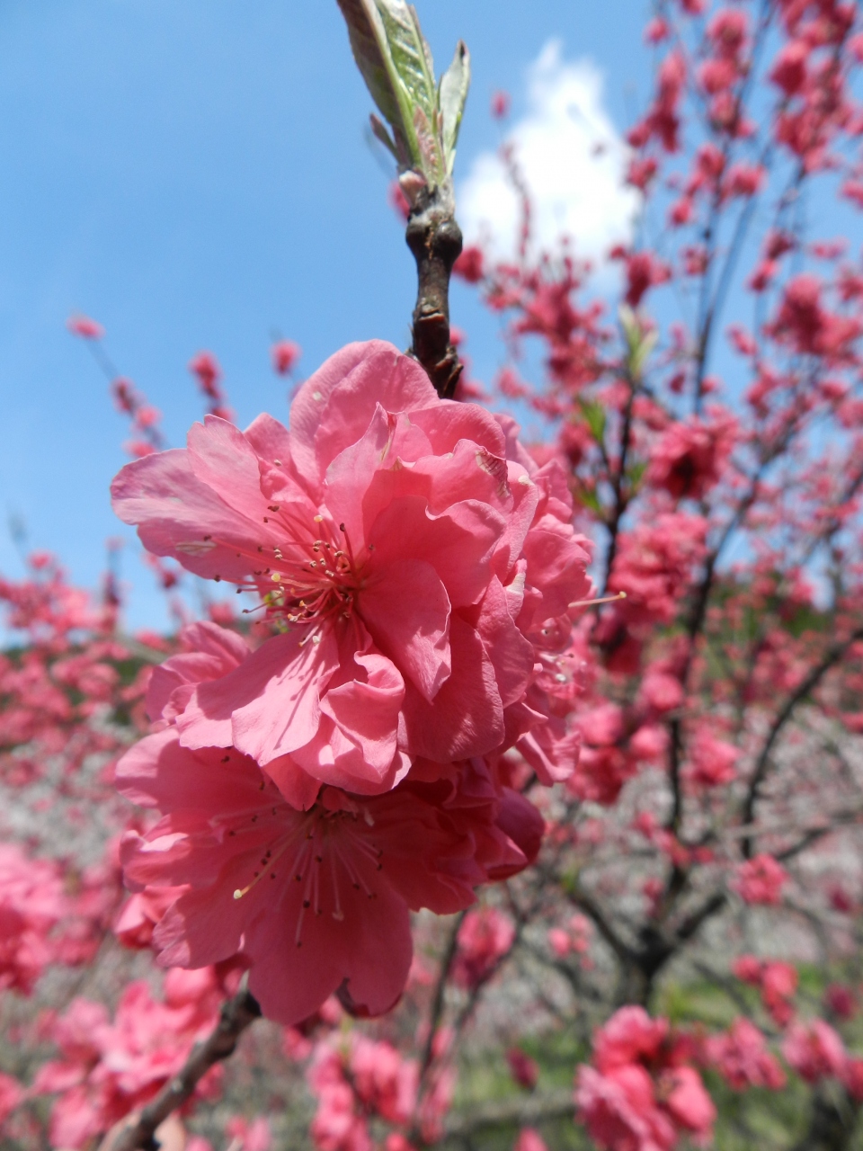 中央自動車道・園原インターチェンジから本谷川沿いに南に進路をとると、シーズンであればいたるところにハナモモの花が見えてきます。