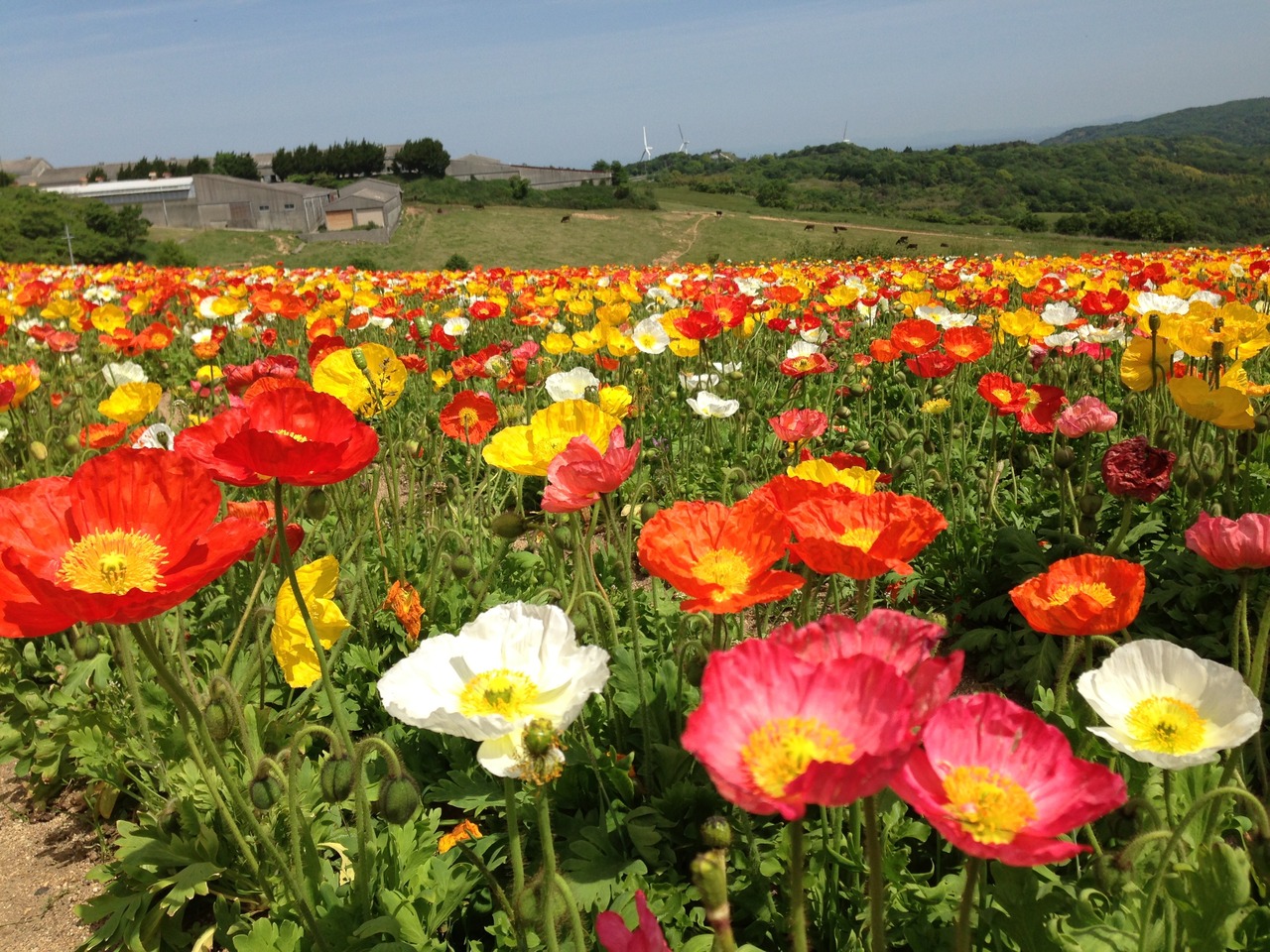淡路島のほこる、優良施設の一つです。敷地内には、花が咲き誇っており、敷地内散策は無料。また、なんと駐車場も無料です。この時期には、ポピーがたくさん咲いており、花や海、また牛たちを遠くに眺めながらゆっくり。