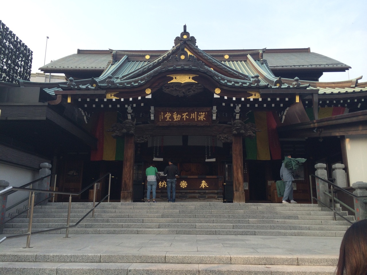 門前仲町駅から徒歩数分で深川不動尊に着きます。参道にはお煎餅屋さんや日本酒のお店などが並んでいて、とても良い雰囲気。