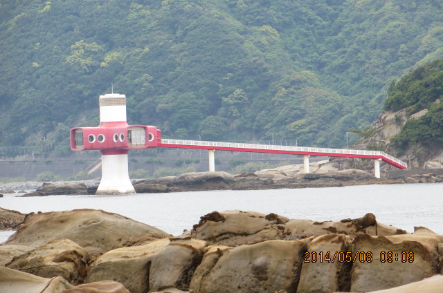 竜串海岸の上に建設された赤と白の建物で、竜串海岸からも見えて目立っていました。