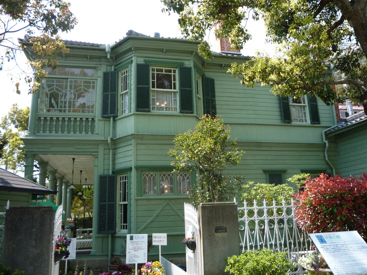 北野町広場前にあり風見鶏の館の横にある淡いグリーン色が特徴の建物です。 二階のにある窓から眺める景色は気持ちが良く、そこにある椅子に座ってゆったりと眺めているとココでの生活を思い描くことができます。また庭もありゆっくりと過ごすことができます。神戸の震災時に煙突が破壊されその一つがそのまま残されています。またこの萌黄の館は映画『少年H』のロケ地でもあります。