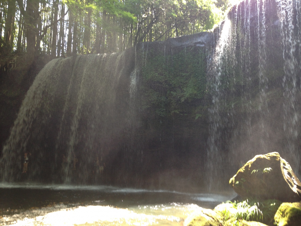 生茶のCMで知名度が上がり観光地になった滝で、滝の「後ろ側」を歩くことができます。途中から道沿いに看板もでており、広い駐車場もあります。1件だけ小さな売店もありアイスやラムネなどが売られおり、隣にはお手洗いも。最初は整備された階段を下って行くのですが、徐々に足場が悪くなっていくので女性はヒールはやめた方がよいです。