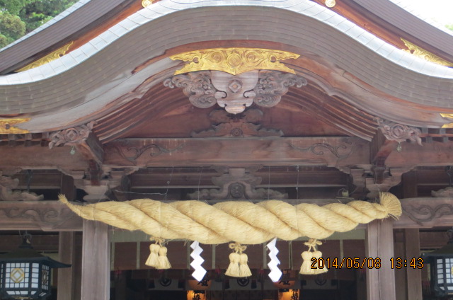 宇和島駅の北にあり、高さ12mの石造りの大鳥居を通り、境内に入る。境内は綺麗に掃除がされていた。又、境内の脇には大きな干支の絵馬が飾られていた。