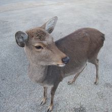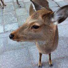すごく人に慣れていて、鹿せんべい売りの店の近くで