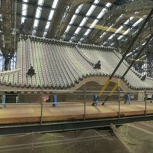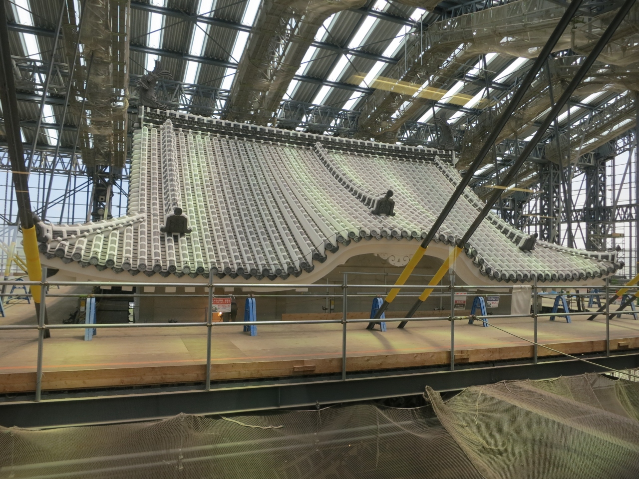 姫路城を訪れたときは大天守保存修理工事中だったので天守閣にシートが被せられていて、お城の外から天守閣を見ることは出来ませんでしたが、エレベーターで天守閣のすぐ近くまで上がり、ガラス窓越しに天守閣の補修工事の様子を見る事が出来ました。