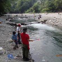 川をいくつかの小さいため池に分けて、そこに鱒が放たれています。