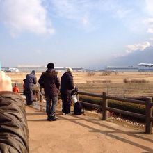 駐車場ももちろんありますが、桜の丘と違い、コンビニがちかくにありません!飛行機観覧は気長に待たなければならないので、何か買うなら、つく前に用意したほうがいいです。自販機はありました。