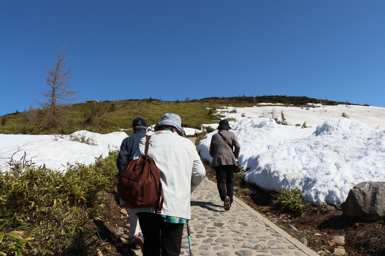 登山道の途中に避難小屋があります。降りる途中にでも避難小屋の脇の道に入ってみてください。お天気が良ければ妙高など北アルプスの眺めを見ることができます。