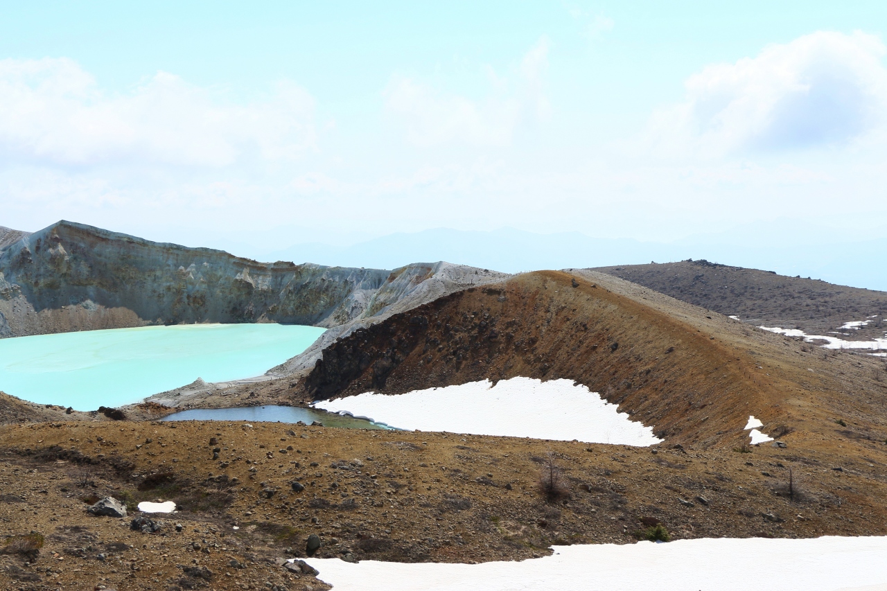 以前は湯釜の近くまで行けたそうですが、有毒ガスの発生により今は近くまでは行けません。迫力には欠けますが、湯釜のクリームソーダのような色は離れた所からでも楽しめます。月面クレーターに水が溜まったような非日常の眺めは一見の価値がありますよ。