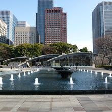 和田倉噴水公園は開放的で中央にある大きな噴水を 取り囲むようにベンチなどもあって