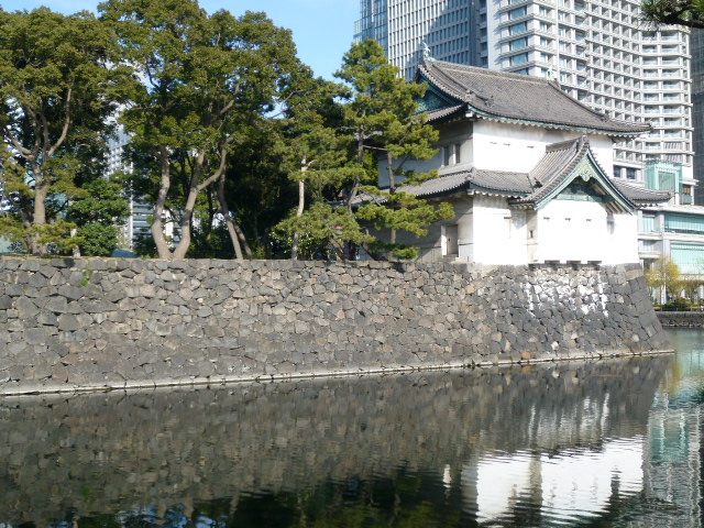 東京駅・丸の内中央口をまっすぐに行幸通り和田倉橋を渡って皇居に出ます。皇居には富士見櫓・伏見櫓・桜田二重櫓がご覧いただけます。お濠と城壁(城郭)の石垣が美しい景観にうっとりしてしまいます。また石垣から少しはみ出た防御設備された石落としがわかります。