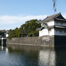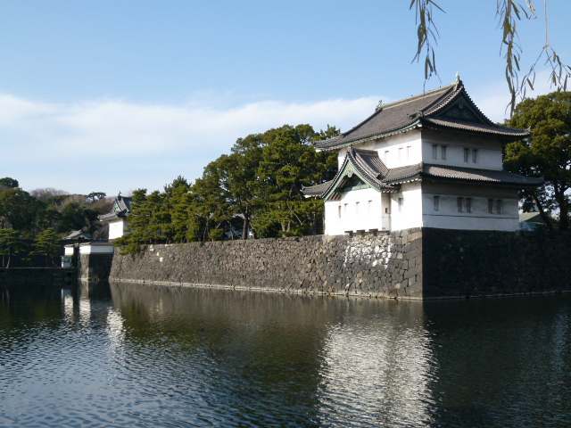 重厚な桔梗門(ききょうもん)は別名内桜田門と呼ばれています。ちらの門の名前の由来は、その昔には門瓦に太田道灌の家紋が桔梗がついていたことから桔梗門と呼ばれるようになってそうです。皇居参観の折には、こちらで集合して内観させていただきました。