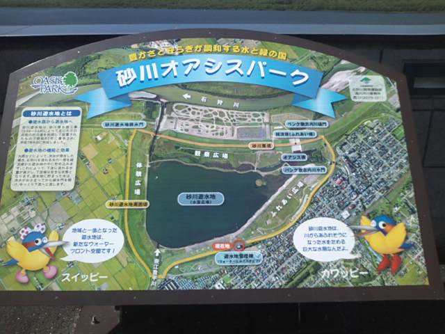 砂川の穴場的スポットとして結構お勧めできるのがこちらの公園だと思います。正式に公園としてオープンしたのは平成に入ってからのことですので、まだまだ新しい公園といえますが、ここは元々洪水などで生じた氾濫水を溜めることで、水位を鎮静化させるという災害対策用の遊水池として、石狩川のいわゆる三日月湖部分がうまく整備されているなという印象を受けました。また、管理棟がとてもゴージャスな雰囲気で、平成初期のバブル期建築を彷彿とさせる、ある意味不釣り合いな建物の外観が、今となっては逆に哀愁が感じられます。