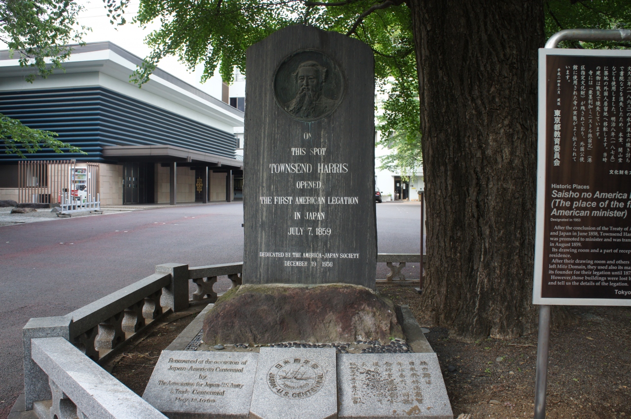 最初のアメリカ公使館跡碑は、善福寺の境内にありました。