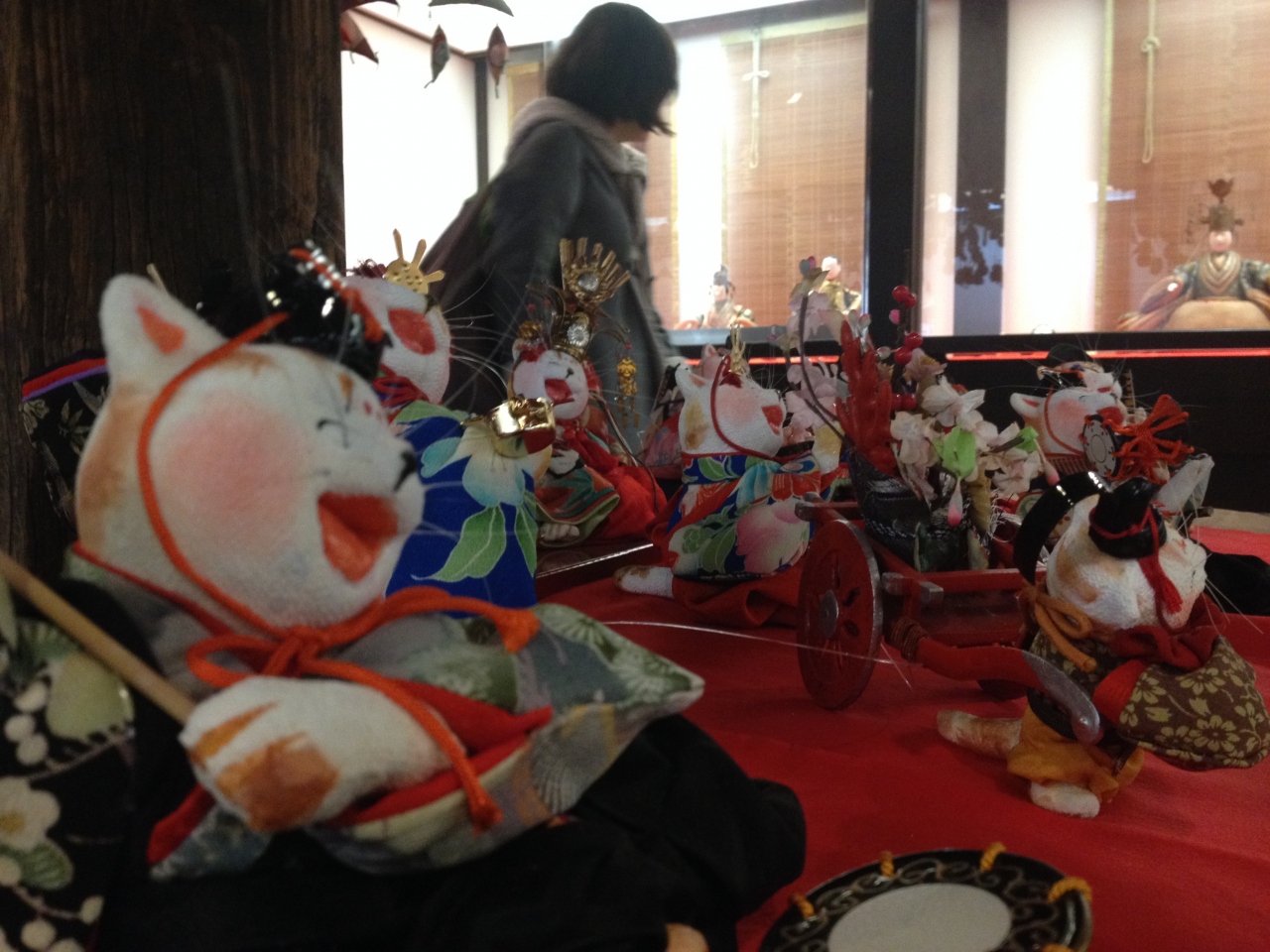 かわいい 猫の創作雛が沢山の人の目を引いていました。