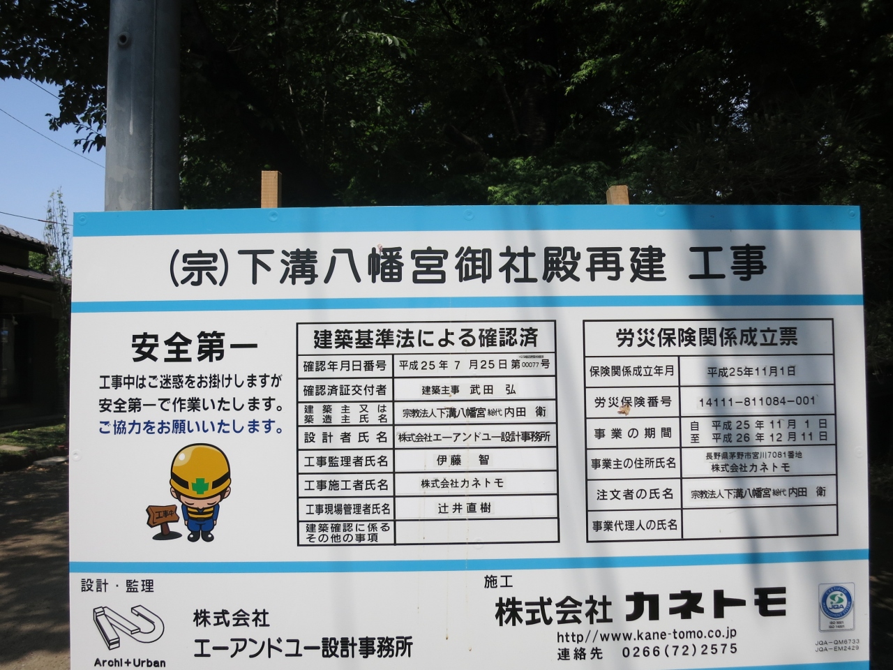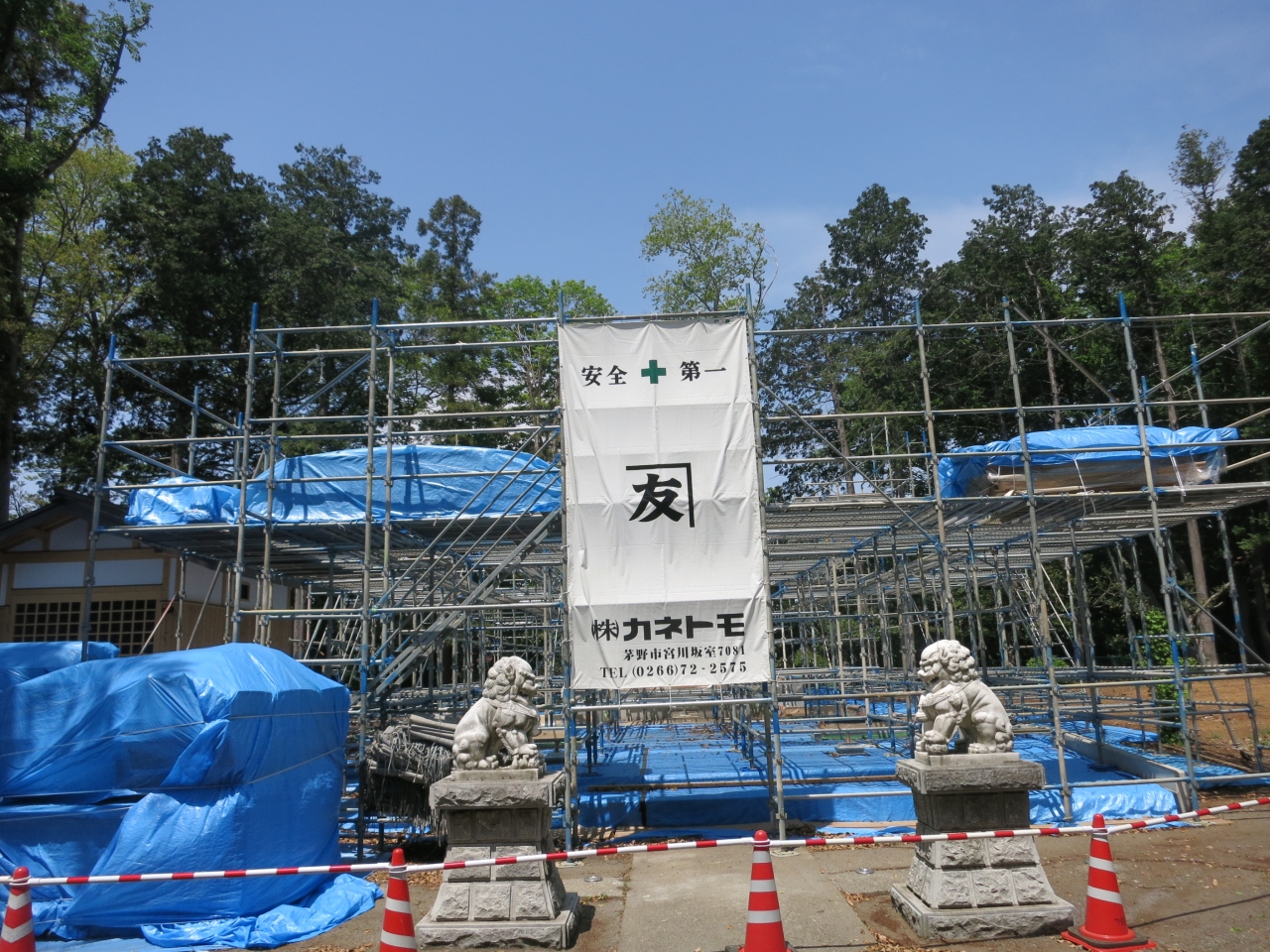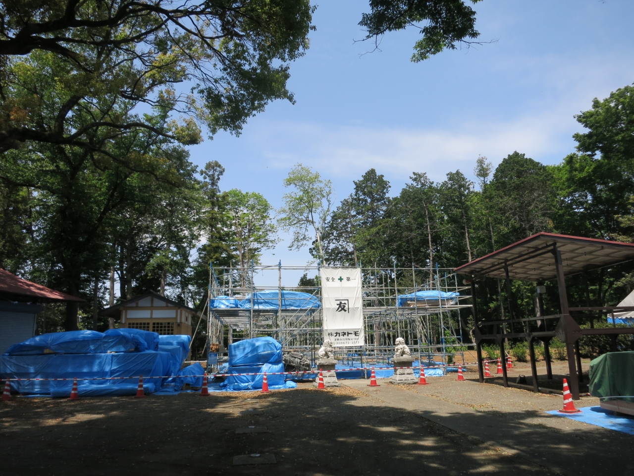 JR相模線下溝駅の東側にあります。戦国時代の天文年間に創建されたという由緒ある八幡宮ですが、2012年に火事により本殿が焼失してしまいました。現在(2014年5月)、再建工事中で、訪れた時には鉄骨が組まれジャングルジムのような感じで、建物はまだ姿を現してはいませんでした。
