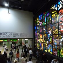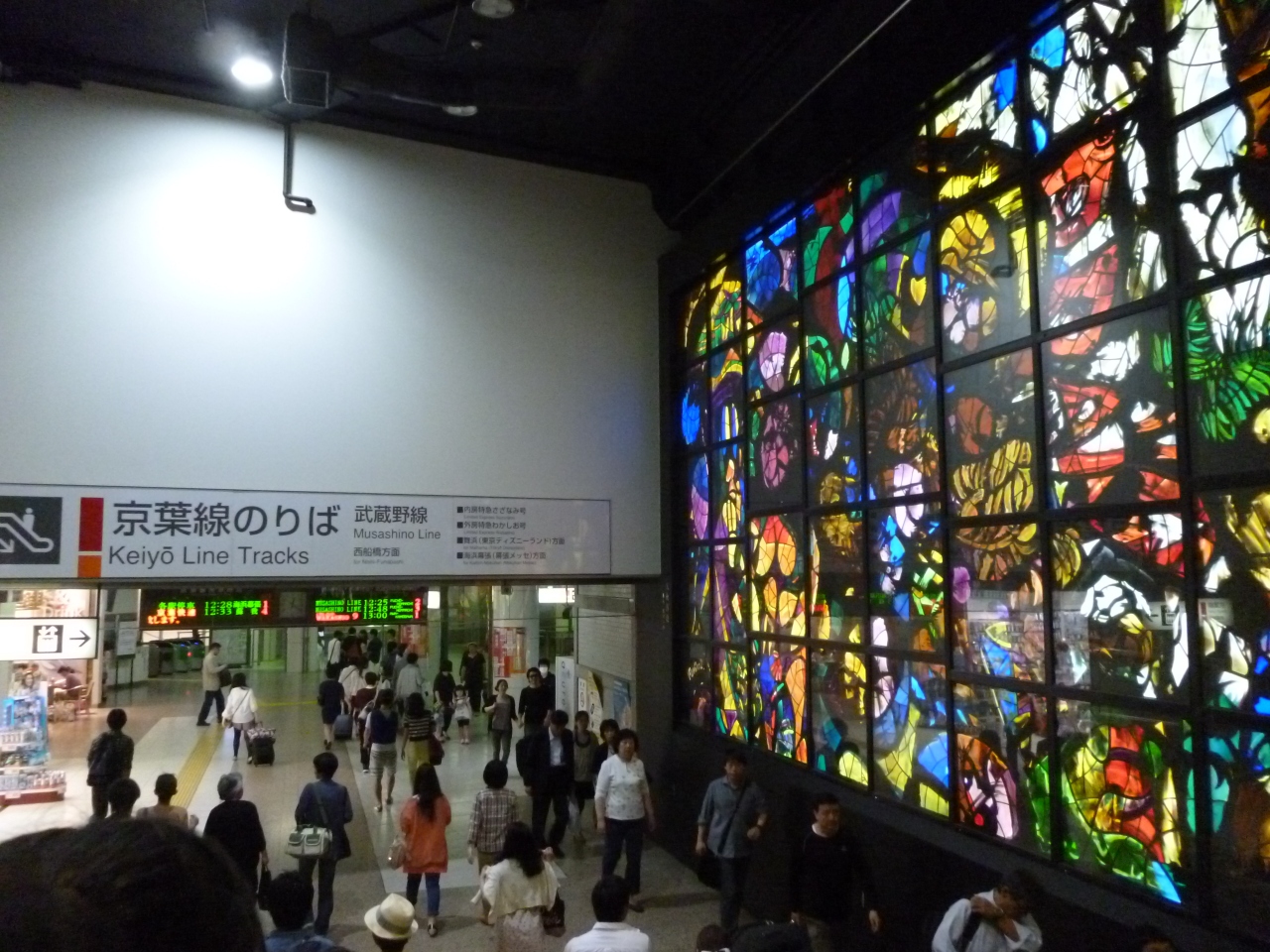 ディズニーランドへ向かう途中に東京駅で乗換えをしました。京葉線のりばまでは500メートルもあり、遠いなと感じましたが、途中で壁を見ると、欧米風でステキなんです。人が多くてわき見ばかりしていられませんが・・・。