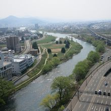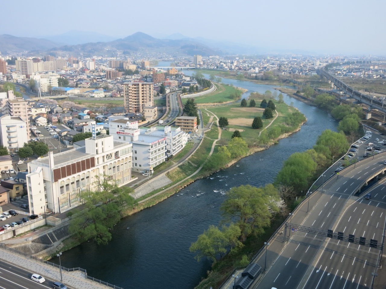 盛岡駅の東側近くを流れる北上川。盛岡市街の中心地を通り、緑豊かな風景が広がり、心がなごむみちのくの風景があります。また駅近くの川からは岩手山も良く見えます。の風景開運橋などの名所もあり、散策するのも良いかと思います