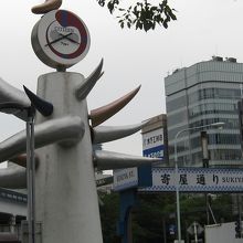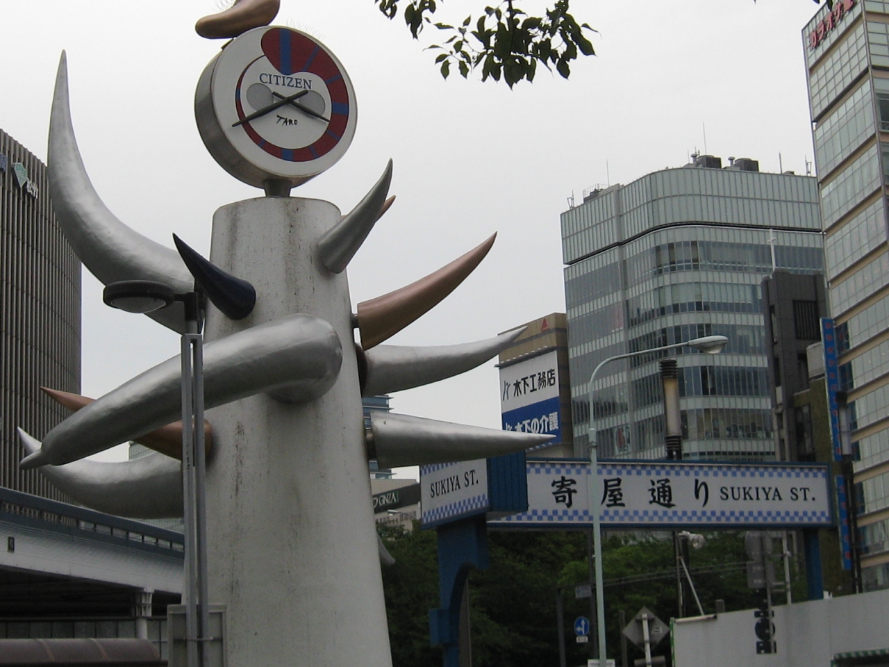 有楽町にある外堀通りに沿って、一つ日比谷寄りにある通りです。細い通りです,「数寄屋通り」とひときわ目立つ、大きく看板が掲げられています。この通りから少し入ると,コリドー街はここから少し入った先です。隣にあった阪急ビルが取り壊されたので,この「数寄屋通り」の看板がよく見えます。