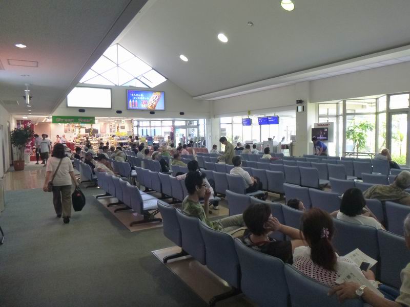 宮古島の玄関口。赤瓦の屋根が沖縄らしく、デザイン的にも優れていて、いつ行ってもきれいな空港だなぁと感じます。1階がチェックインカウンターと到着口、2階が出発口と飲食店と土産物店、3階がデッキとシンプルな構造。離島の空港なのでこじんまりとしているのですが、利用客は意外と多く賑わっています。アクセスについては、空港ターミナルが市街地とは反対側にあるため、平良の市街地や港へ行くには遠回りしなくてはなりません。また、観光で訪れた人でレンタカーを借りる人は送迎車で移動しますが、それ以外は事実上タクシーで移動するしか選択肢はありません。タクシー業界の圧力が強く、石垣島にあるような空港と市街地を結ぶ路線バスがない状態です。