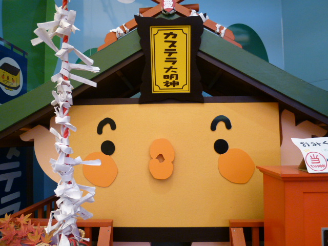 いやいや、「カステラ神社」???こんなの聞いたことないですね、初めて聞きましたよ。長崎ならではでしょうか。カステラ色に日焼けした神主さん???が待っています。その奥の階段を降りると土産物屋さんがあり、特徴を活かした各メーカーのカステラが販売しています。