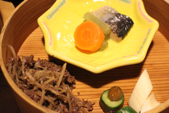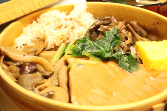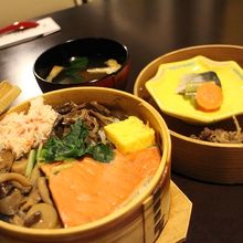 わっぱ飯は何種類かありますが、お店の方にきいたら色々はいっているのがお勧めでした。鮭・カニ・山菜・たまごなど盛り沢山でした。ほかほかでとっても美味しかったです!