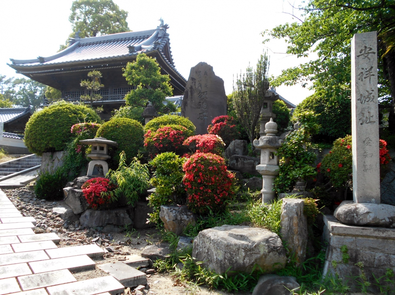 母方の祖父母の墓参の際に時々立ち寄ります。大乗寺が本丸跡・隣接の八幡社が二の丸跡となっていますが、ここに平城があったとは想像もつきませんでした。皐月の花咲く時期に訪れましたが、お庭がとてもきれいでしたよ。