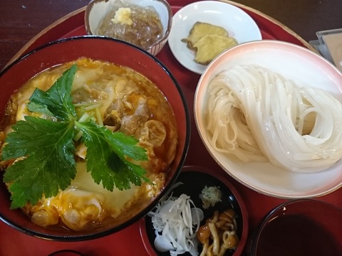 比内地鶏の親子丼と、稲庭うどんのセットを注文しました。