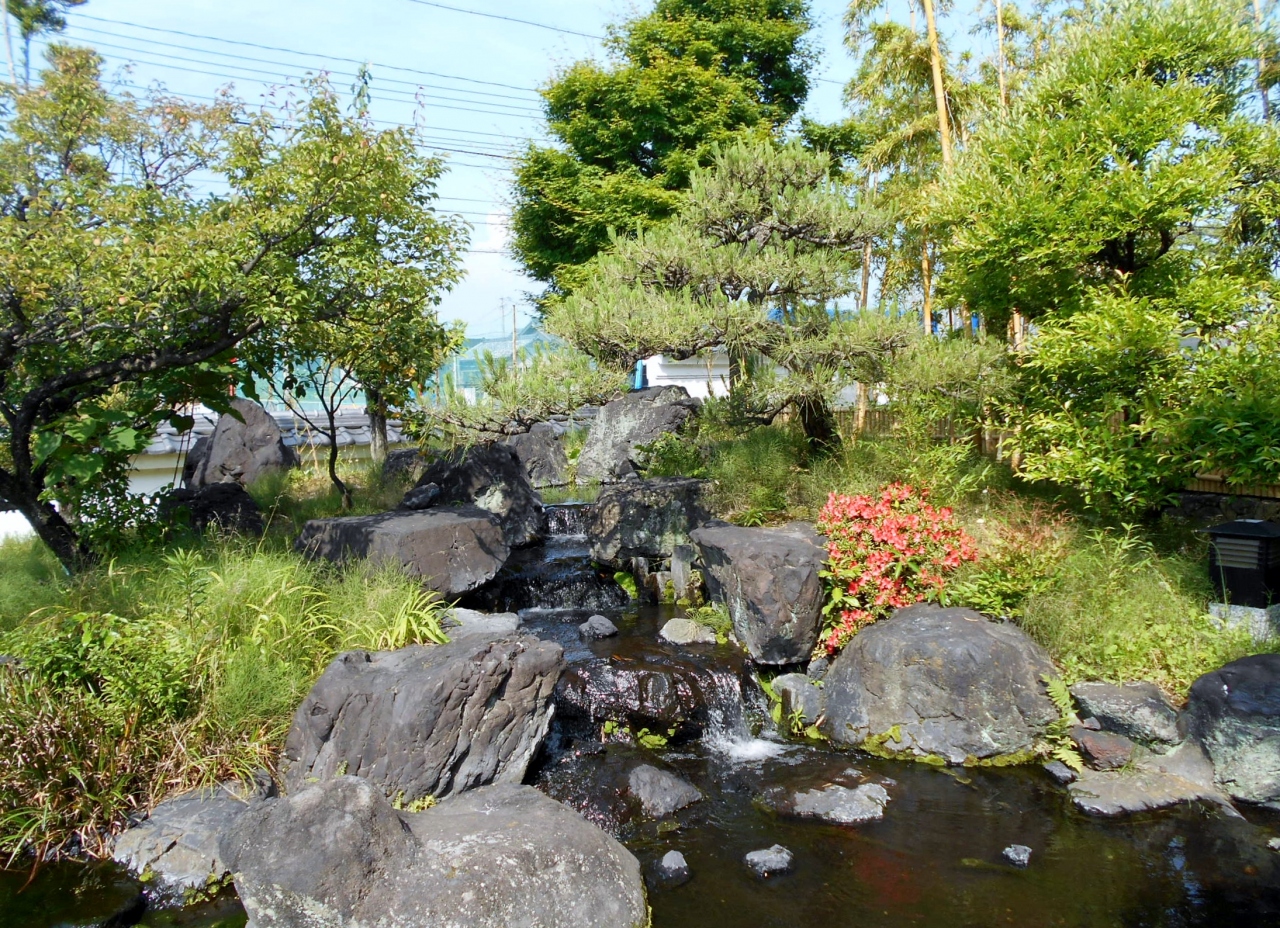 屋外に出ると滝石組・水の流れ・植栽・石組・モニュメント・四阿のある庭園があり、散策・鑑賞がとても楽しいです。安祥城址とセットで訪れることをお勧めします。