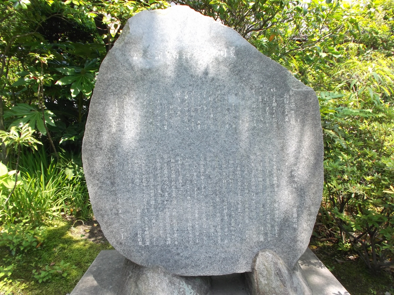 駆け込み寺で知られ禅寺で有名な東慶寺の参道(山門前)右手の木立ある空間に石碑と解説版があります。