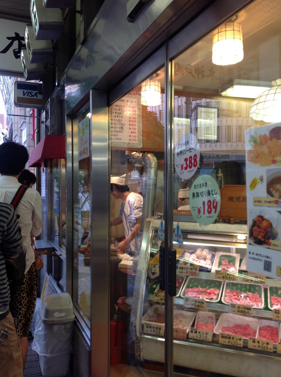 大丸からの帰り道に偶然見つけました。行列がすごくて一目でわかります。並ぶと窓越しにおいしそうな神戸牛が並んでいるのが見えます。コロッケ、メンチカツを頂きました。両方ともびっくりするくらいおいしい!!