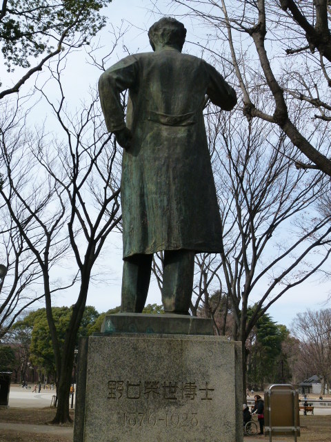 上野公園の中には、時代時代に活躍された方の像が建っています。その中に「野口英世像」はあります。なぜ上野? 野口英世は、猪苗代湖畔の農家に生まれた、そうです。良い環境に生まれているようですが、幼少のころは大変苦労されたようですね。偉大な方たちがおられて、今世界に誇れる医療大国になっていますね。