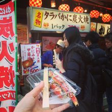 何だろうと近づいてみるとタラバ蟹の足と味噌が売られてました。