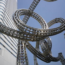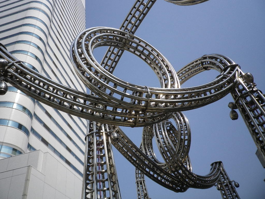 あの金属のモニュメント、あのジェットコースターのようなオブジェ、と人々は呼んでいるがモクモク ワクワク ヨコハマ ヨーヨーという変わった名前が付いている。