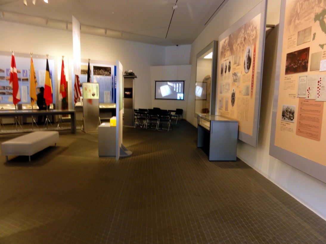 明治初期の日本の状況、世界情勢、歴史背景のパネルや資料が飾られています。