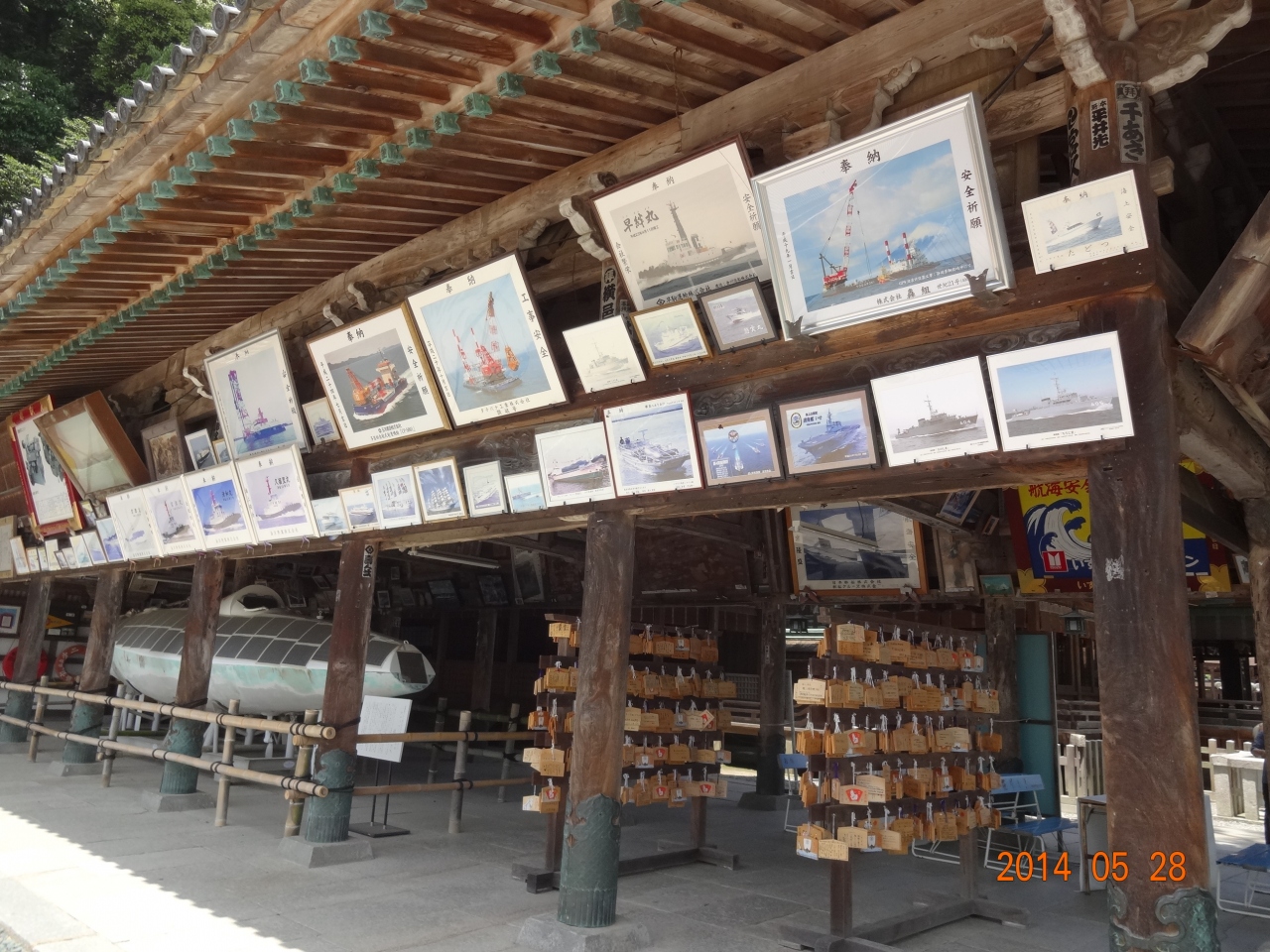 金刀比羅宮が海上交通の守り神として信仰されているので、漁師さんや船員さんなど、海に関わる方々が、航行の安全を祈願したり、大漁を祈願するたくさんの絵馬が吊るしてありました。