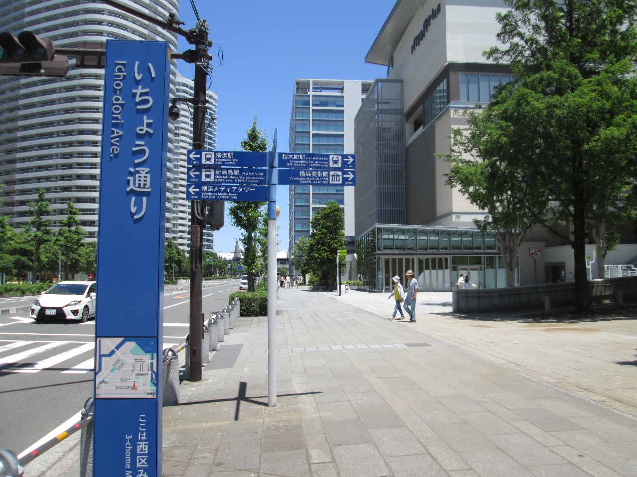 クイーンズスクウェアの入口から横浜美術館周辺まで続く長い公園を交差している通りである。きれいに整備された通りで車の通りは多くないのであまり渋滞はしない。通りの両端の歩道は幅が十分に広く通行する際に接触することはないだろう。