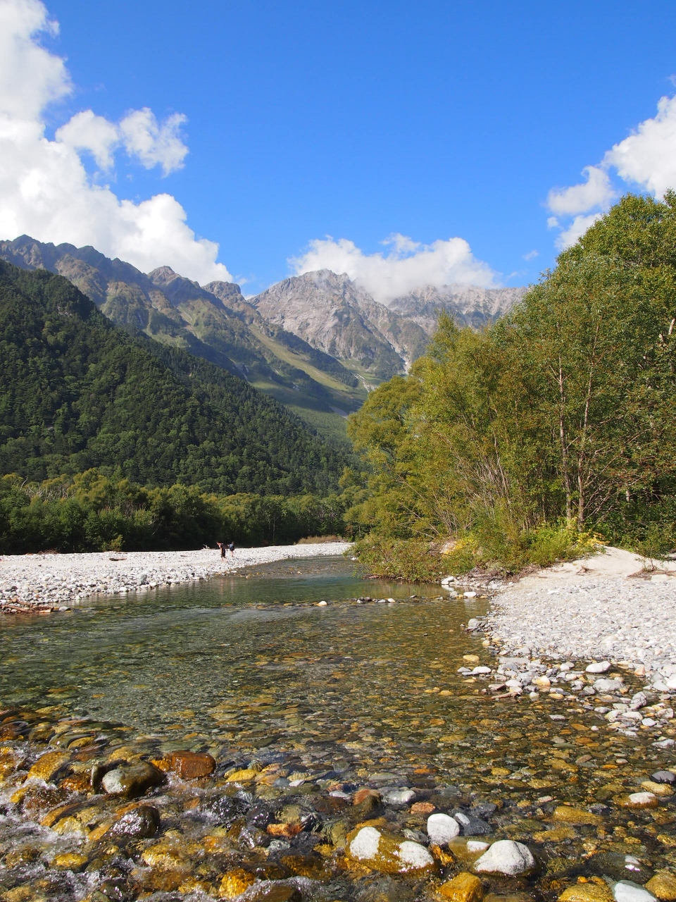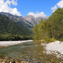 途中途中で河原におりて冷たい川の水を触ってみたり、