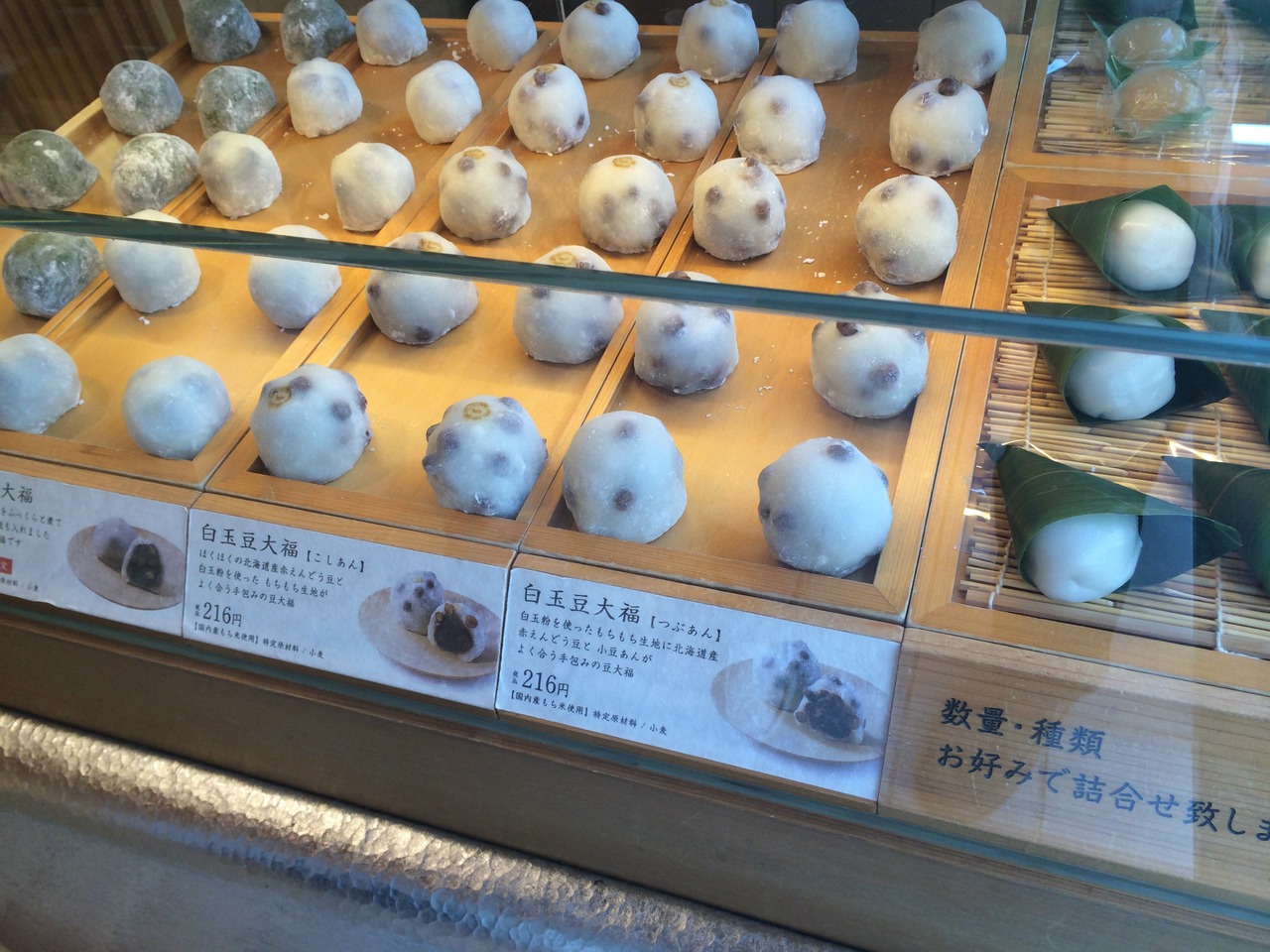 こしあんとつぶあんの二種ありますが、私のハートを射止めたのは、こしあんです。その他いろいろな大福があります。いちにちに何個も食べられませんが、お茶と一緒に食べると美味しくて日本人だと思います。